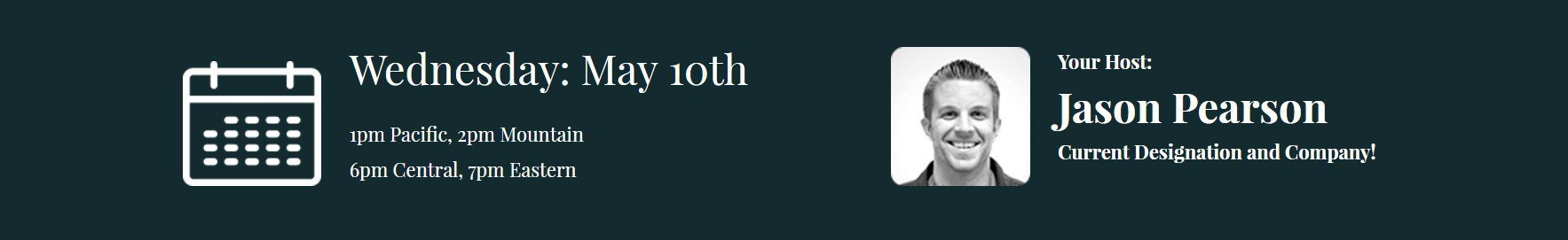 Following this, is a section where you can tell people about the date and time of the webinar and about the person who is going to host it.