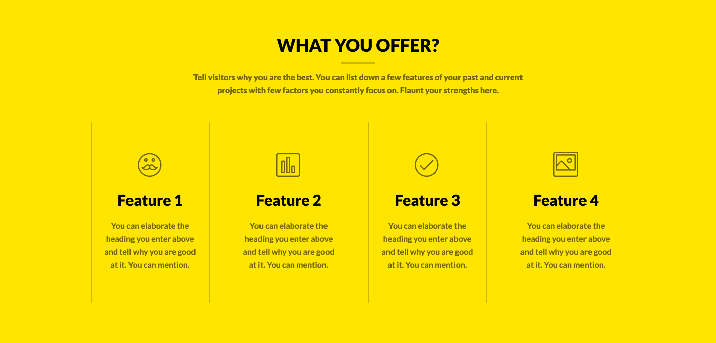 Yet again, you have a chance to place a catchy call-to-action after a visitor has read all the features and services you offer.