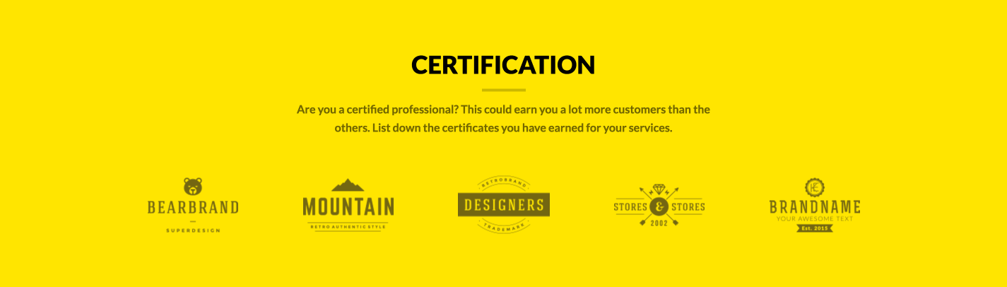 Have some certifications and awards to show off? We have a section for that too! The section after your contact info can contain all the certifications and awards, or even the top clients you’ve worked with in the past. Believe it or not, this contributes a lot in conversions!