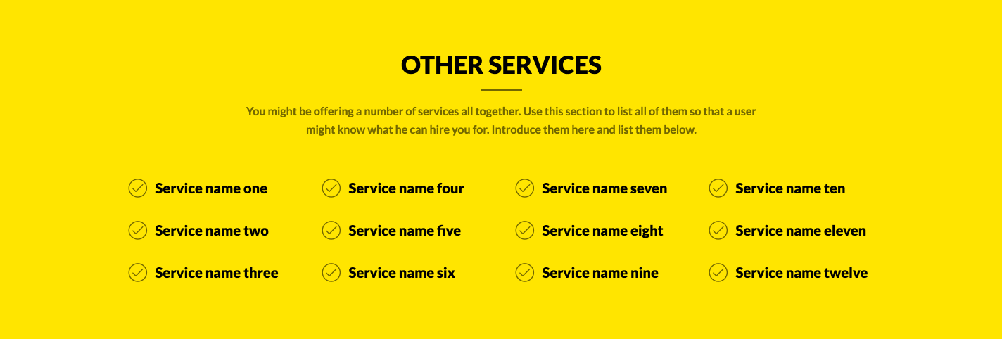 People will want to know what more are you known for. So, here it is. You can list all the services you provide in the section below.
