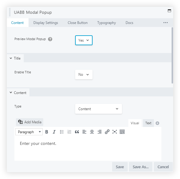 Like those in Beaver Builder and the UABB modules, the Modal popup module can be dragged and dropped with easy settings to display it in minutes.