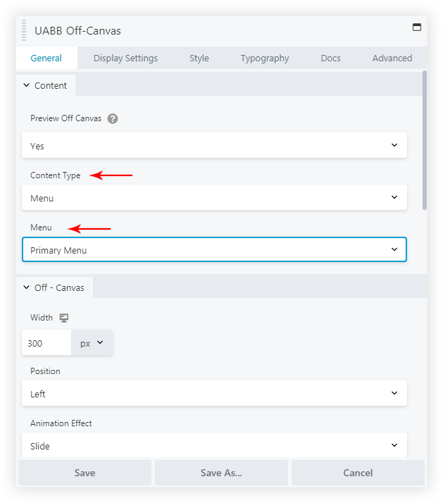 UABB offers the Off-Canvas module that has an inbuilt option to display the navigation menu. Read about all available options here.