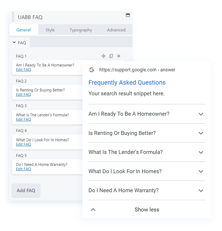 Go ahead and try out the FAQ module on your FAQ page, and make them eligible for Google Search easily,