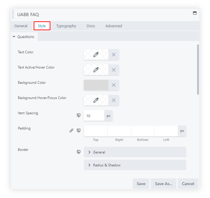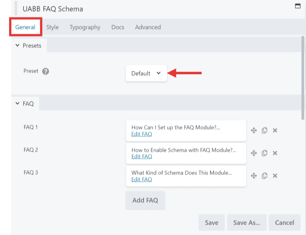 While working with UABB modules, you can choose any style from a list of professionally designed, sleek, and classic presets. Presets will help you quickly create great designs. You can select the preset of your choice by navigating to General > Presets. But before changing presets, save the content, you added to the module. Otherwise, your content will be overwritten with the default one.