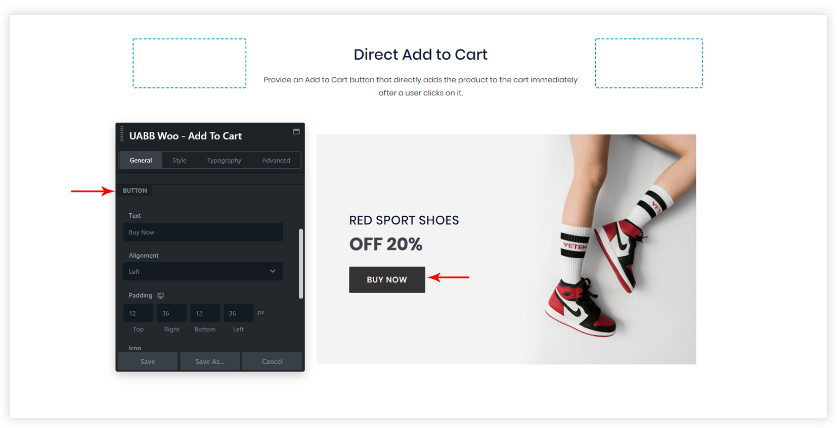 – When a user clicks the button, the selected product will be directly added to the cart.