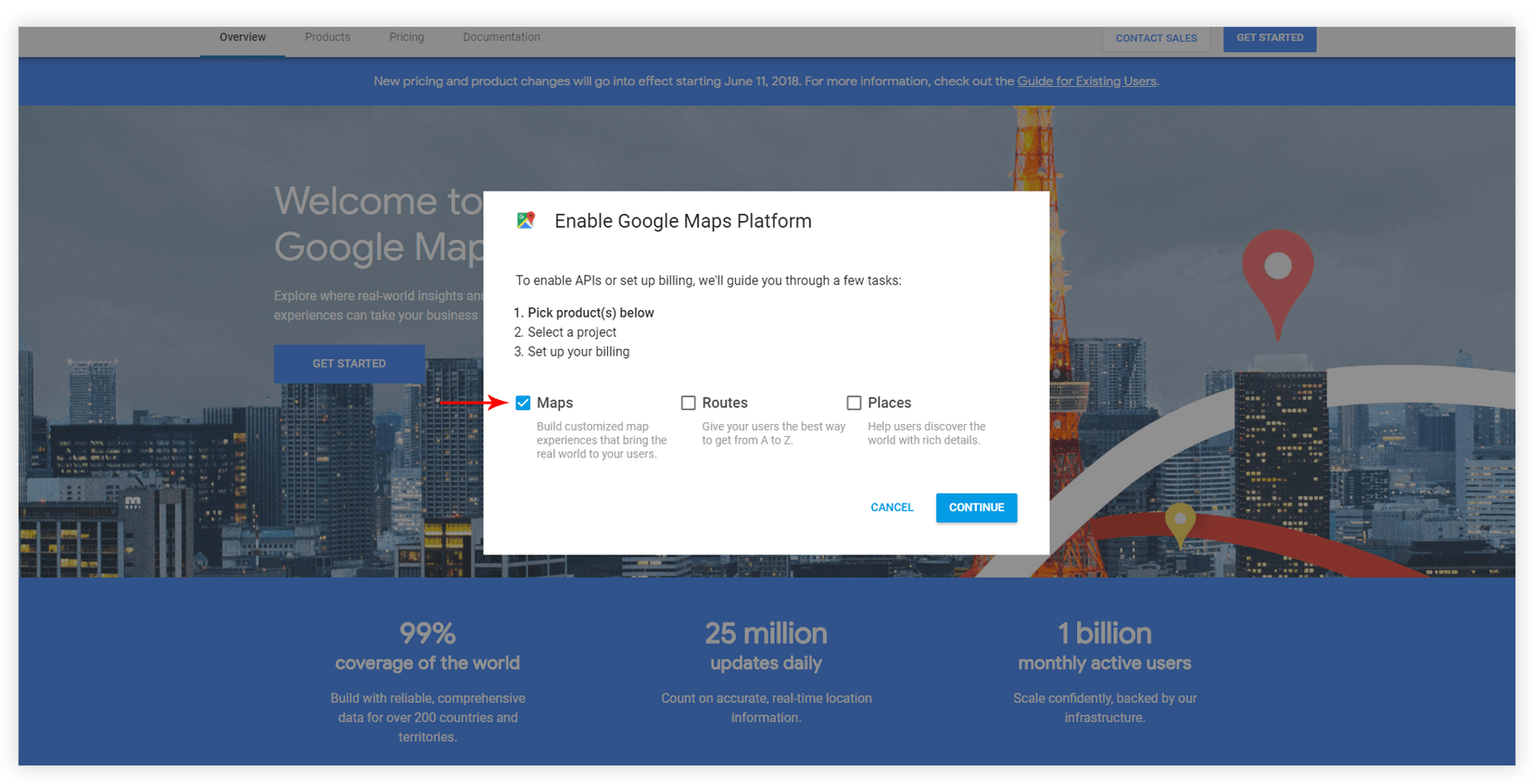 From June 11, 2018, it is mandatory to enable the billing account with a credit card/ bank account details and have a valid API key for all projects.