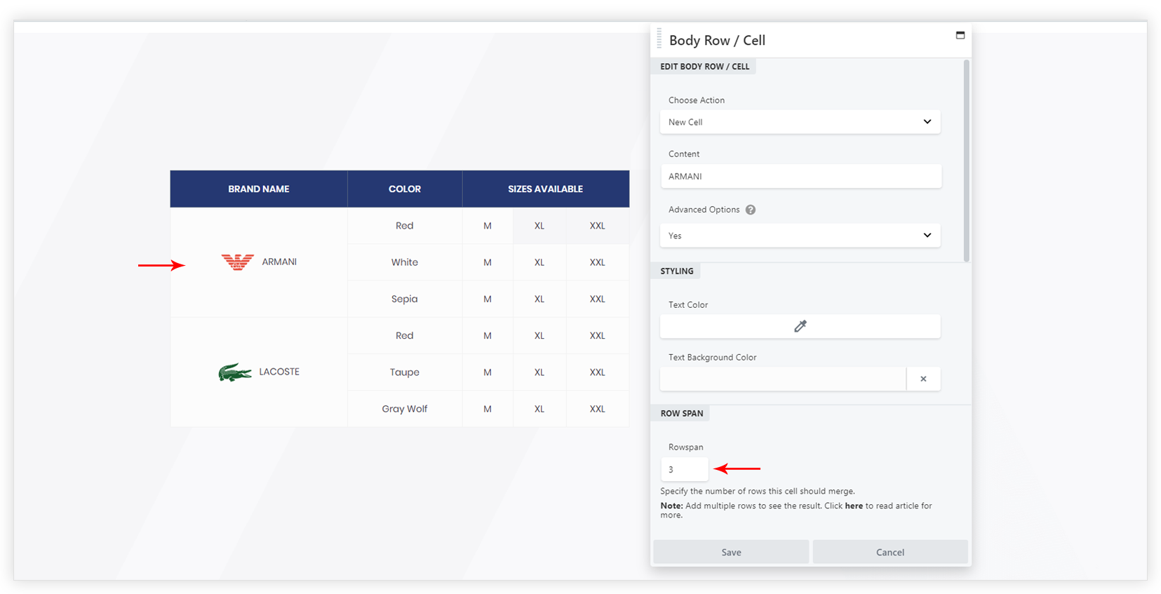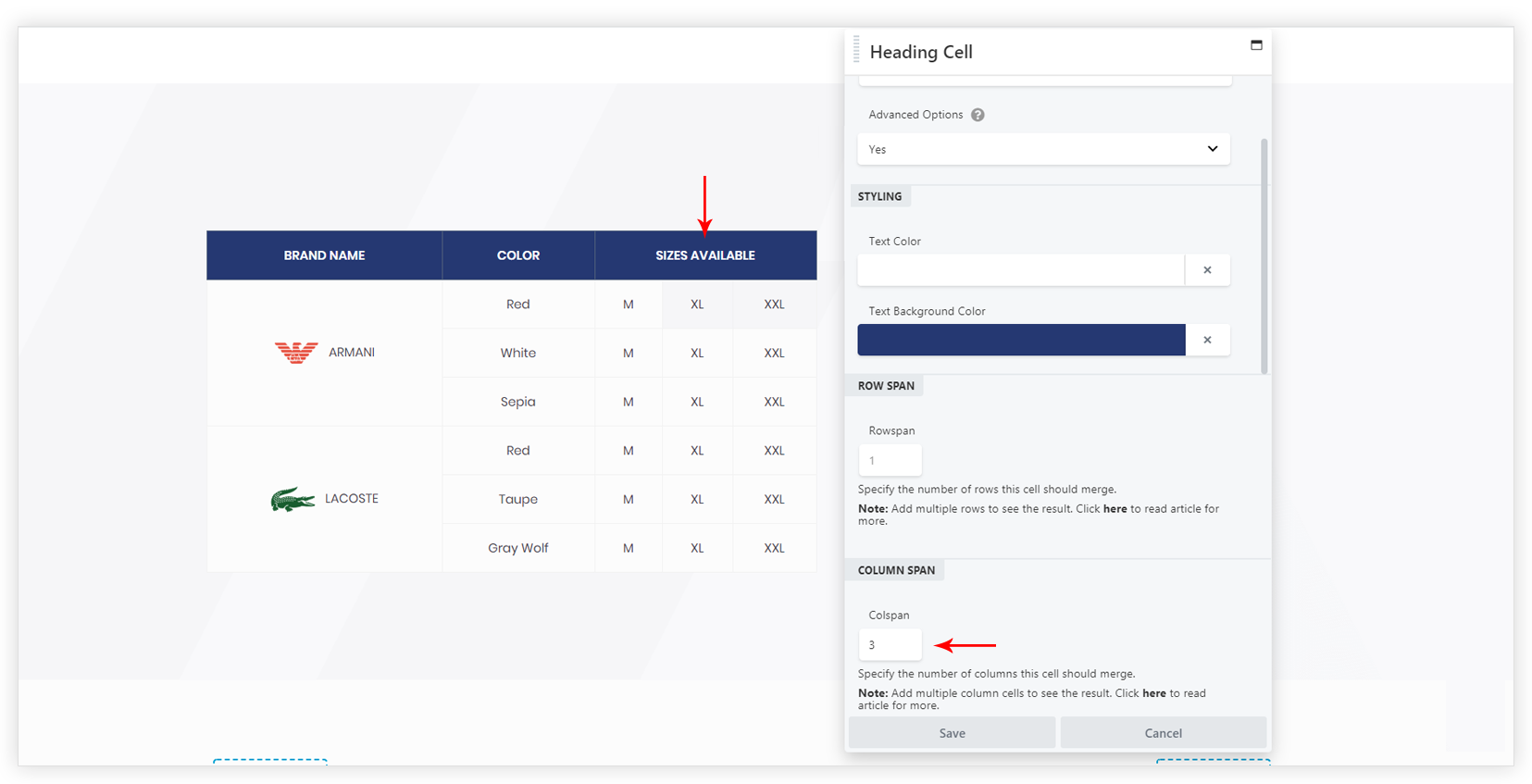 For Example – If you wish to combine 2 columns to the current cell then add Column Span value 3. It will add 2 columns to the current cell.