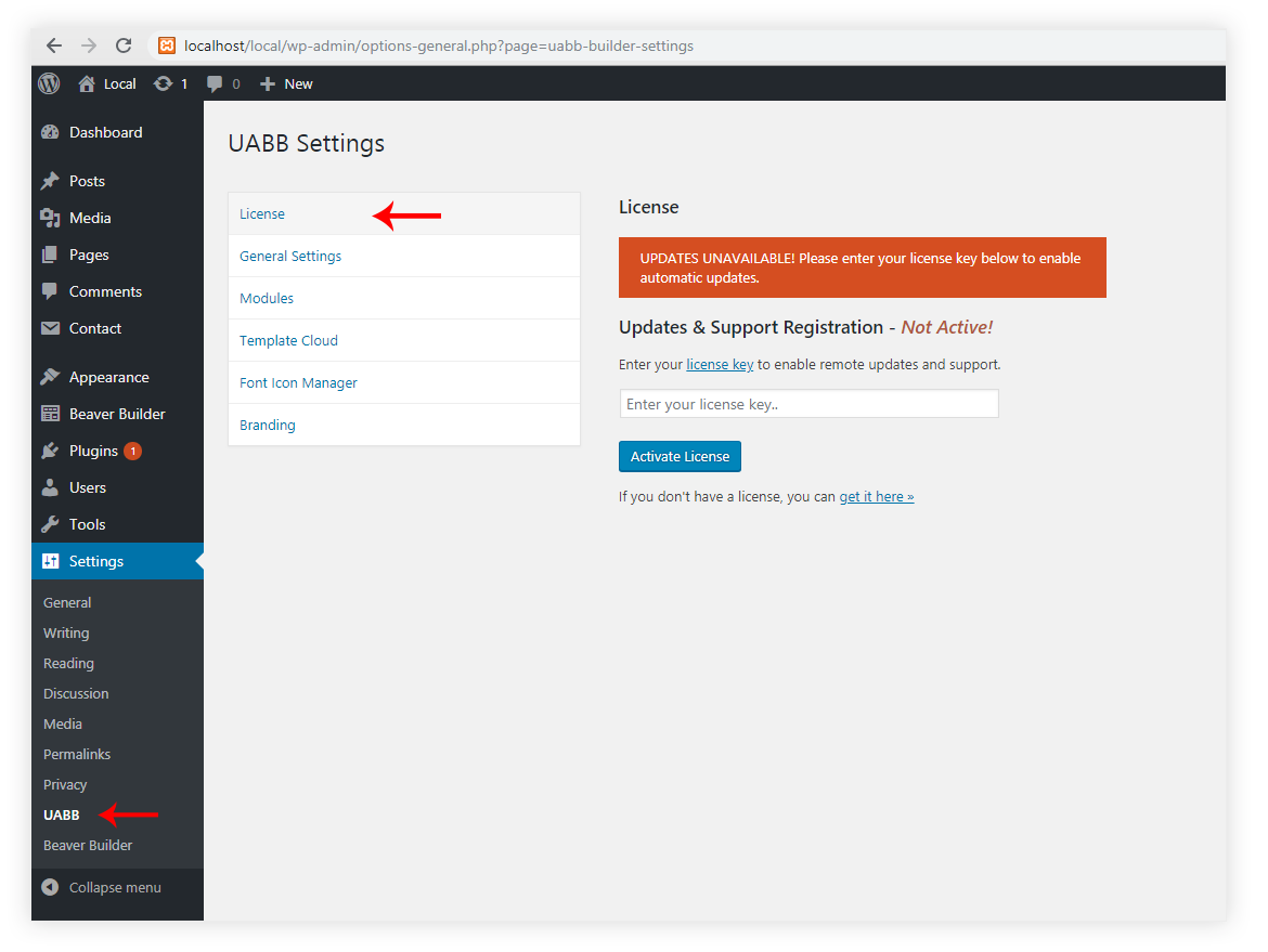 1. Go to settings -> UABB -> License