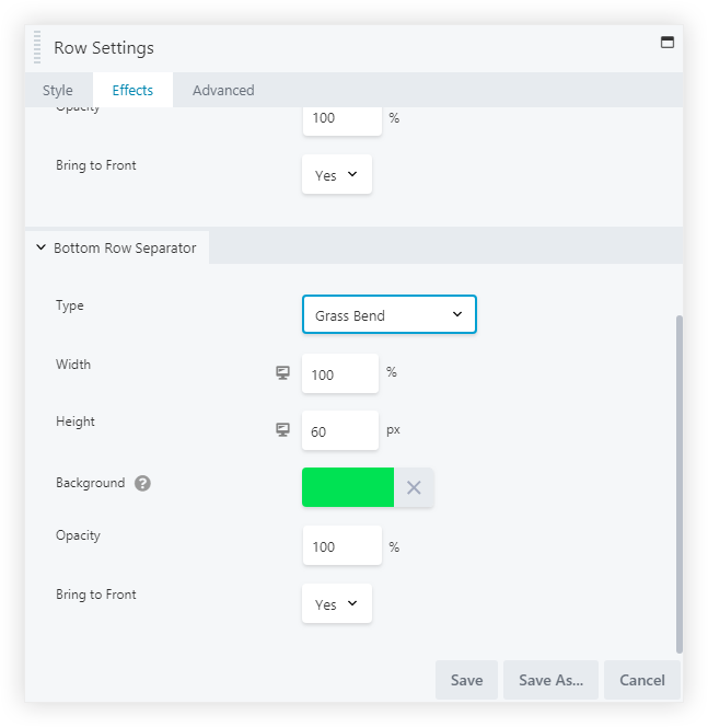 4. Go to the Effects tab in the Row Settings.