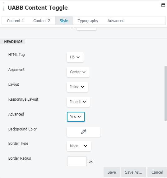 Using the Content Tab you can add the Background Color, Border Radius, Padding for content. You can also add spacing between headings and buttons and in content and headings.