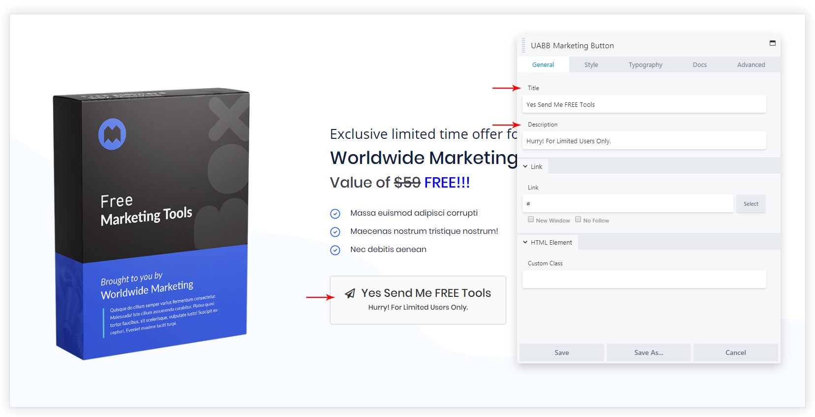 - Add title, description, and link to the button