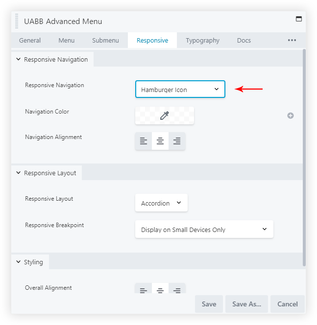Select Responsive Layout > Overlay in the Responsive Tab.