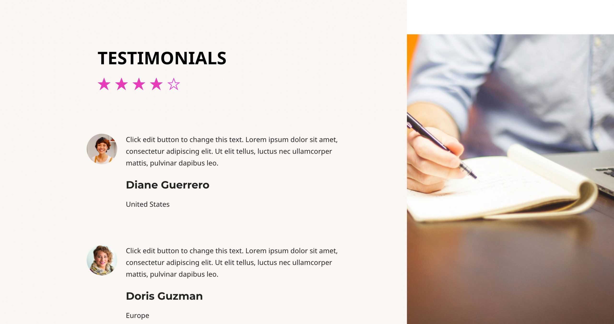 You can add title and star ratings with your favorite colors and typography.