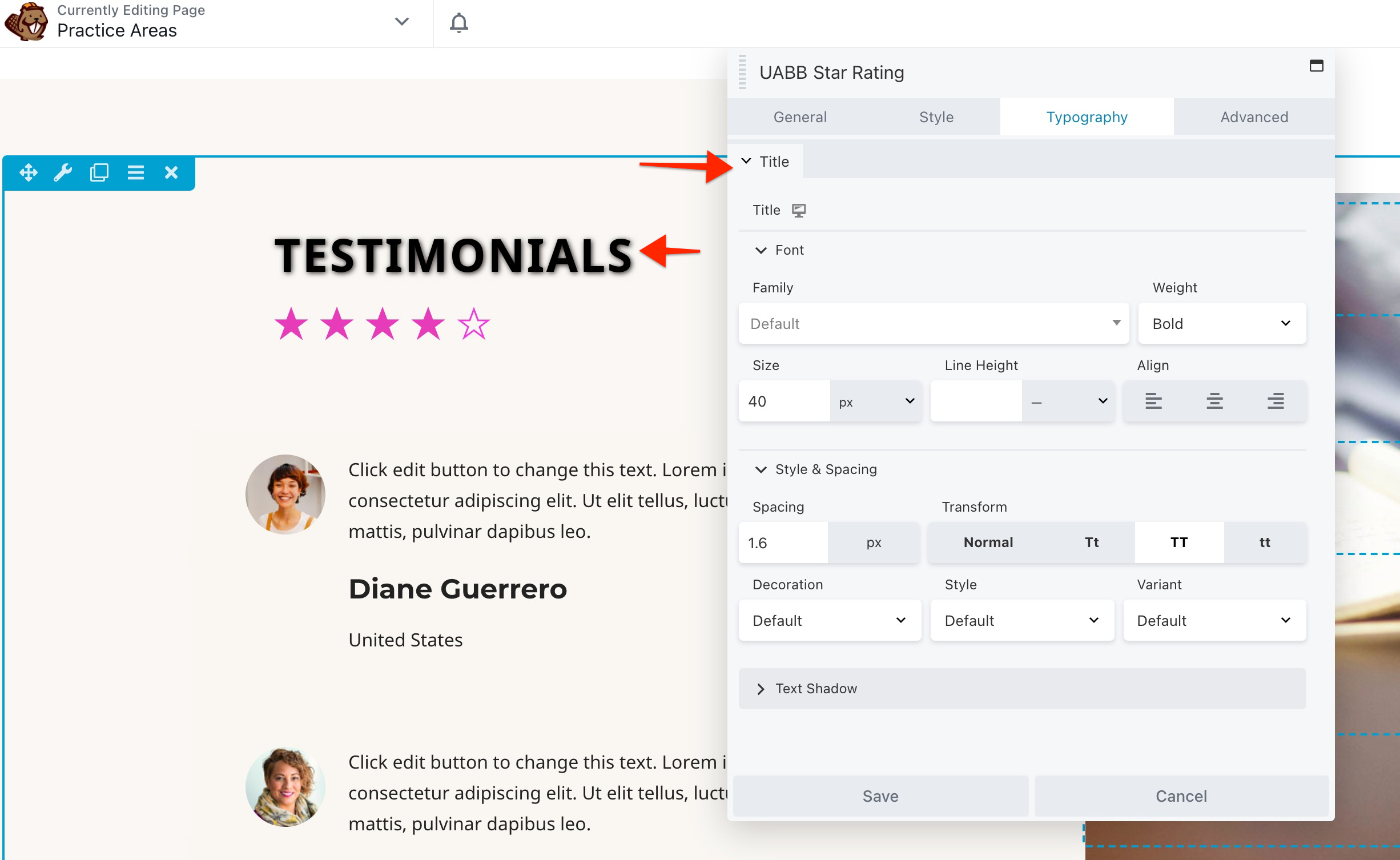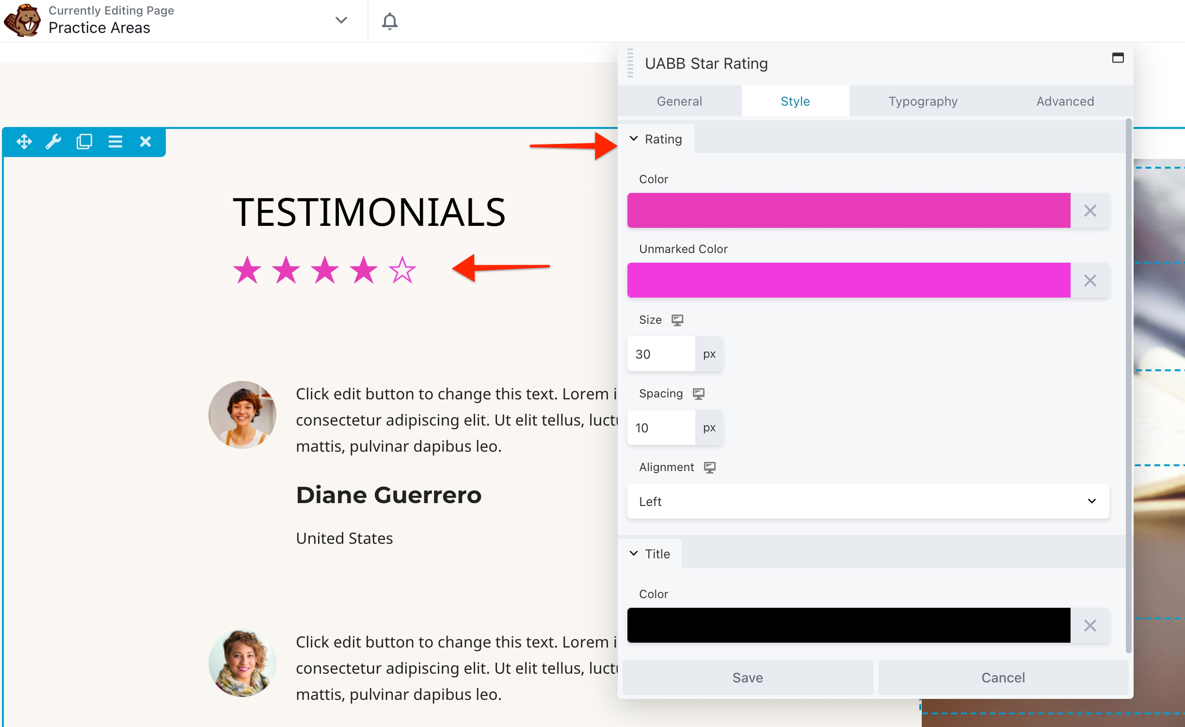 Title and Stars: When you add module to the page, you can set the title and configure star ratings with the following settings.