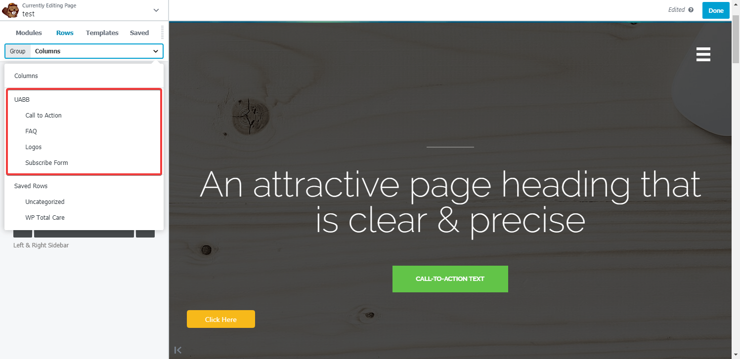 UABB comes with a huge template library. For better user experience, we have categorized all the section templates according to their purpose, viz. Call to action, Heading, Content, Team, Contact etc.