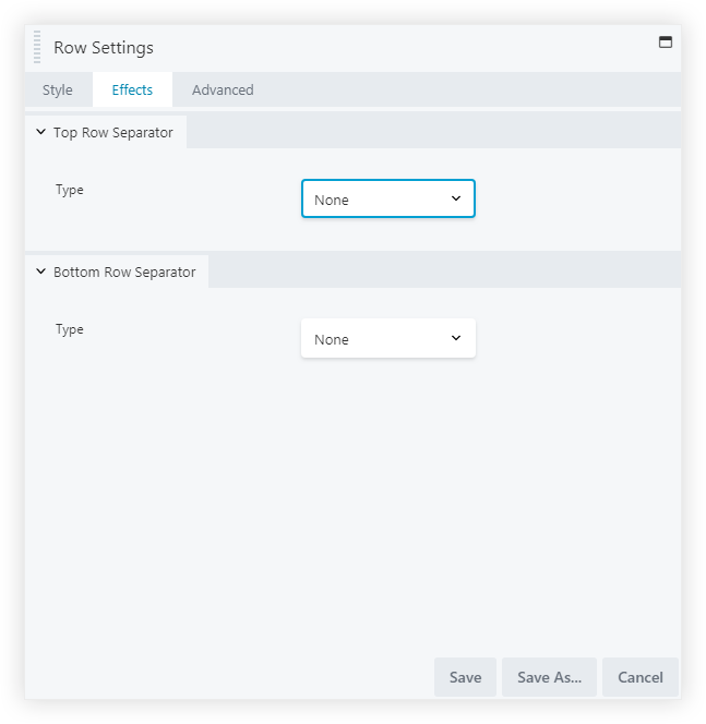 Since, this is a feature that enhances row settings, you will find the Row Separator feature in Row Settings -> Effects tab.