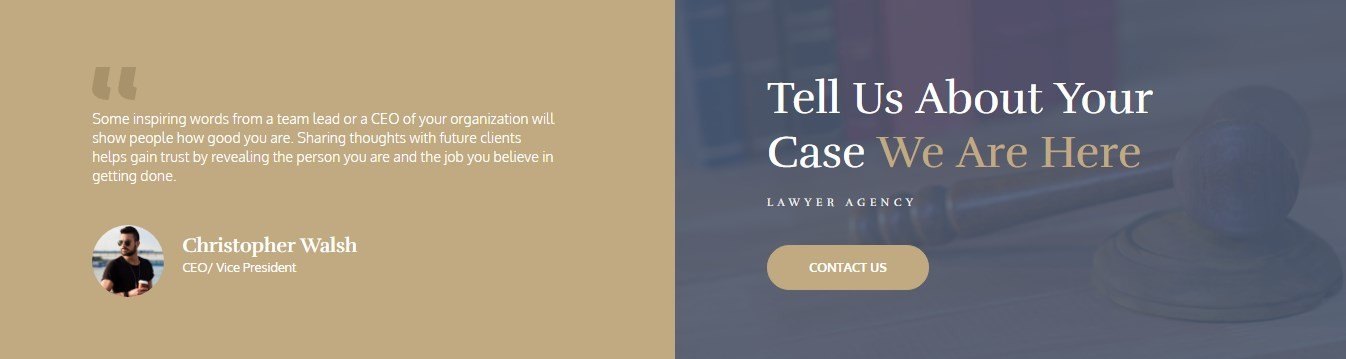 People often think legal matters are quite tedious and take a lot of time. Why not show them some easy steps and promise great results? You can use the following section to show them how easy it is to get in touch with you and to move further with the case. You can let them request a quote using the Contact Form module in this section.