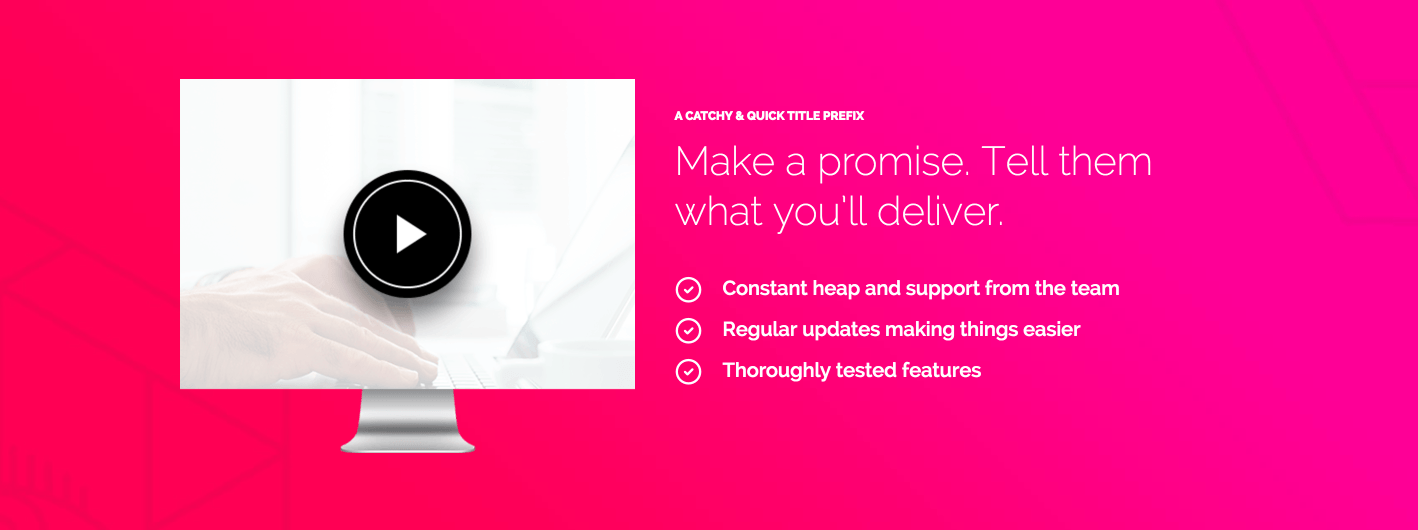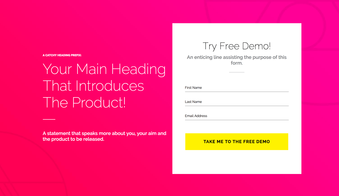 We begin with a bold heading, and some description accompanied by a MailChimp Subscription form and a call-to-action that that will let you collect leads.