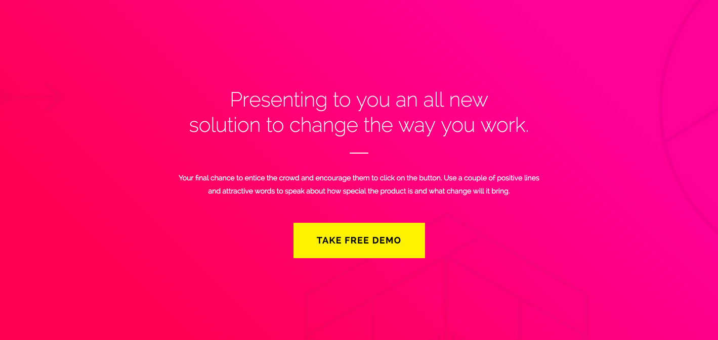 And finally at the bottom, we present visitors with a call to action button for conversion. This button is linked to the first section where we already have a lead generation form.